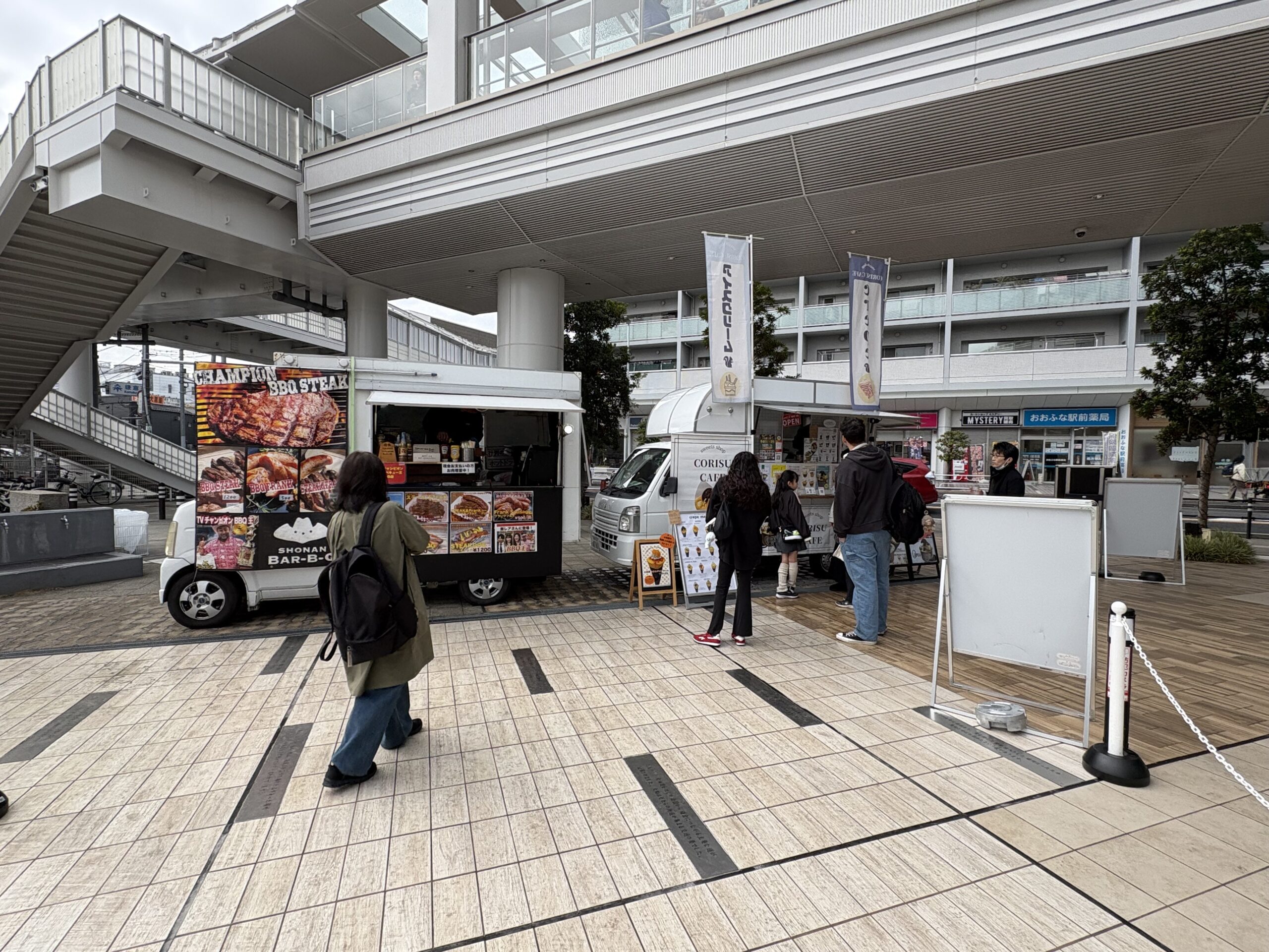 キッチンカーでは、ステーキ丼やフランクフルト、クレープ等を販売いたしました!